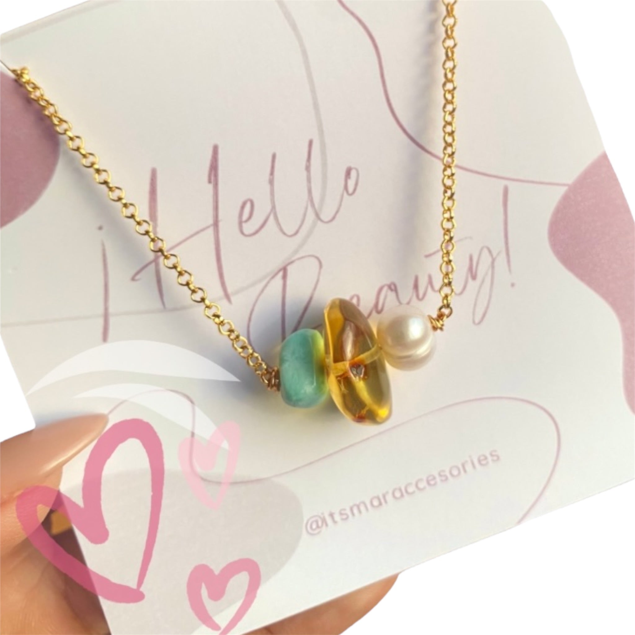 Necklace Natural Stones – Larimar – Ámbar – Natural Pearl